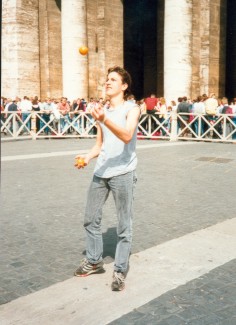 Ob man es glaubt oder nicht, die Leute haben mir damals auf dem Petersplatz in Rom Münzen zugeworfen!! Kleingeld in allen möglichen Währungen, dabei hab ich mich da höchstens 5 Minuten in der Kunst des Jonglierens versucht. Bin extra über die Absperrung, das war auch der Fehler, denn ziemlich schnell kamen welche von der Schweizer Garde anmarschiert!!
