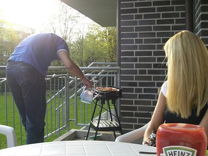 Nachdem wir am 1. Mai ja schon mal im Emsland angegrillt hatten, lud das Wetter einfach dazu ein selbiges auch in Hamburg zu tun. Sicherlich steckte uns nach das harte Wochenende in den Knochen, von wegen erst Cliquenfahrt und dann noch 1. Mai, aber wenn die Sonne uns schon mal auf unserem schönen Balkon so anlacht:-)
